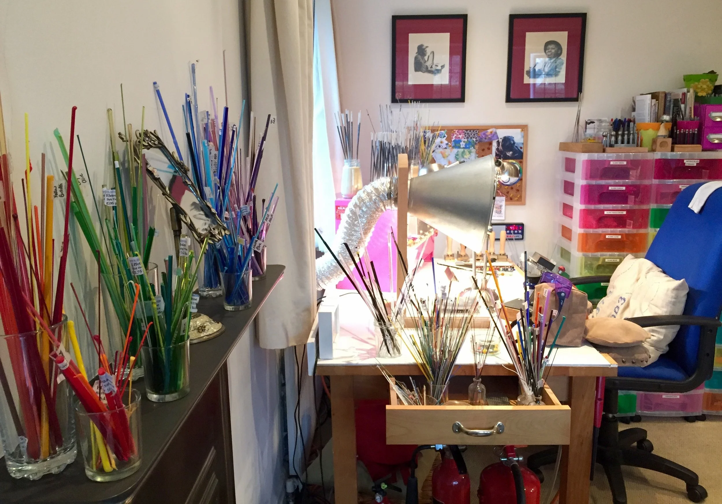 Torching table and selection of glass rods...